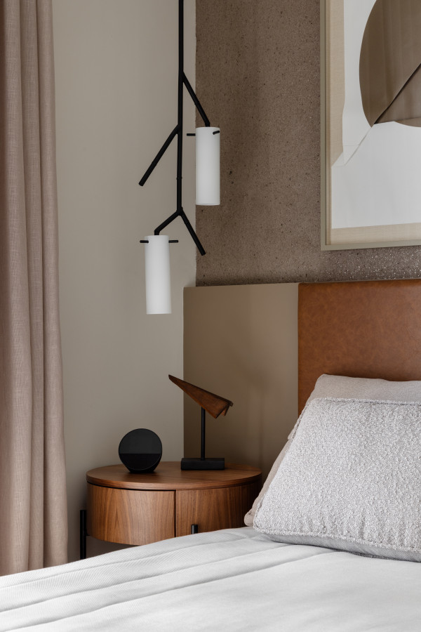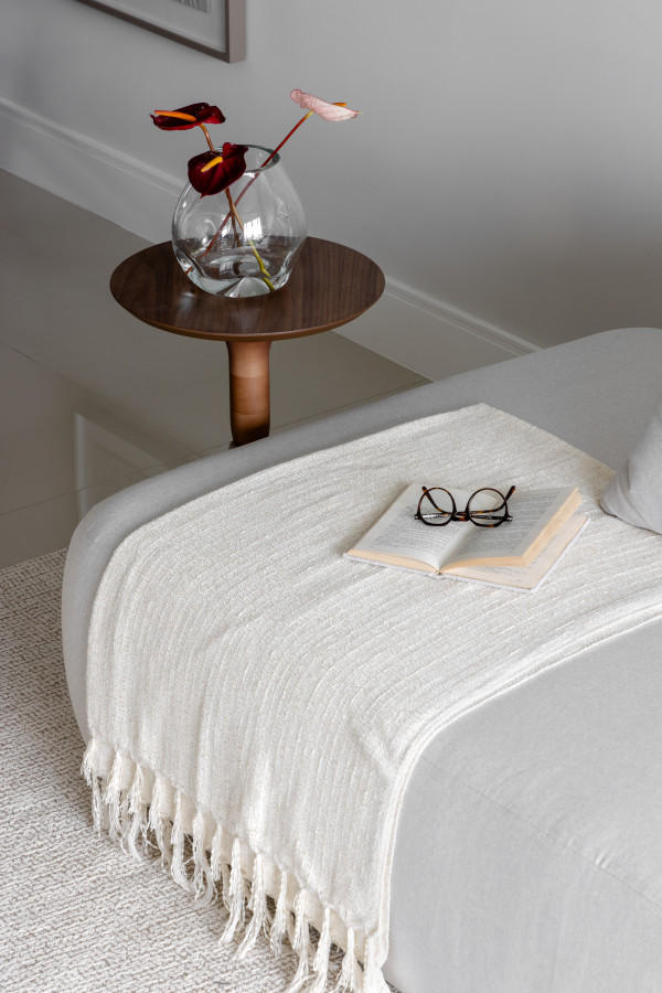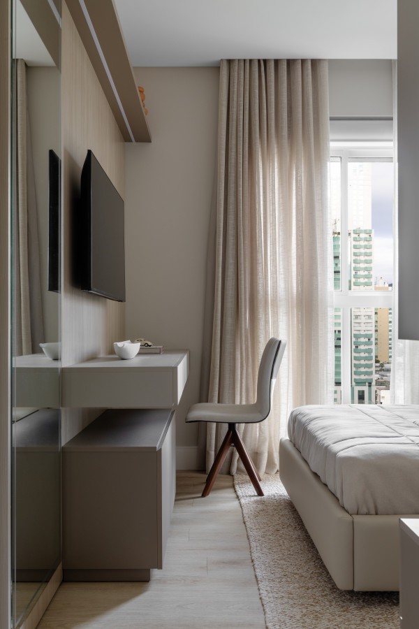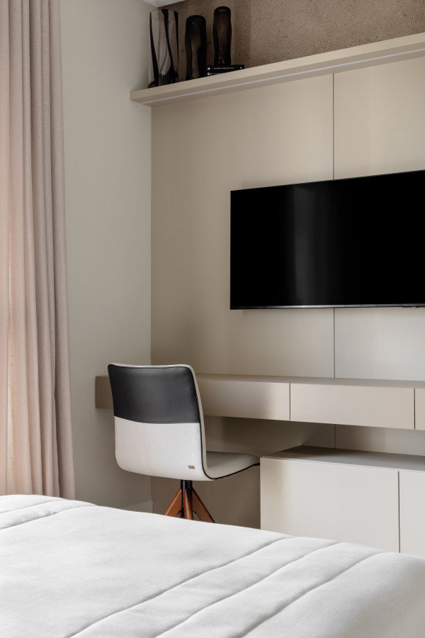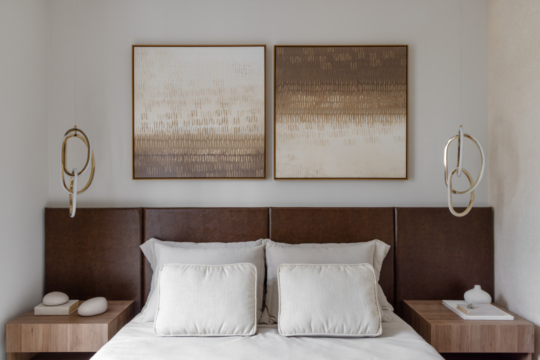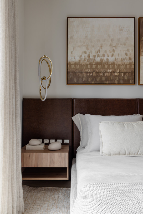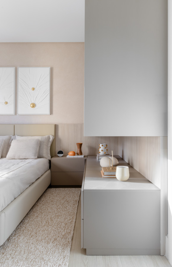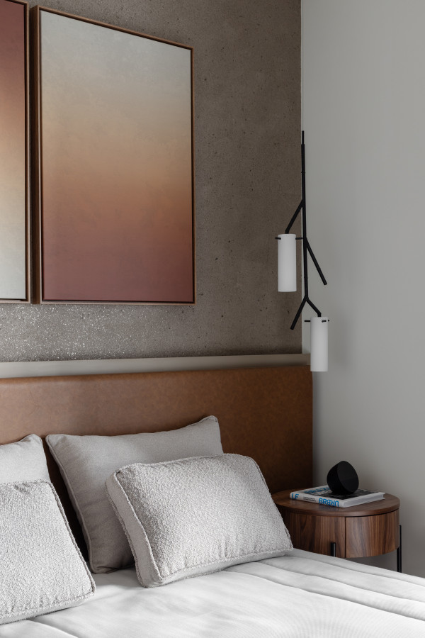 Na área íntima buscamos traduzir a essência individual, mantendo a personalidade do projeto como um todo, mas buscando incluir detalhes que contam um pouco das histórias de cada um.